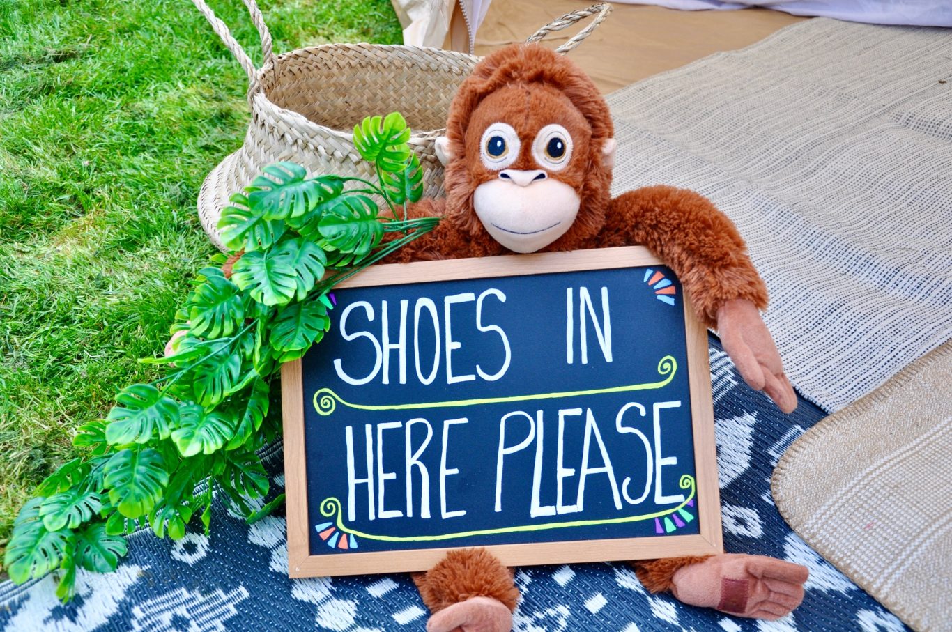 No shoes are allowed in our bell tents, we provide a basket for all shoes to be places before entering the bell tent.